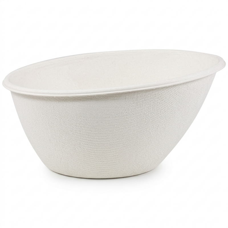 Ce bol ovale en pulpe de canne à sucre est conçu pour les professionnels de la restauration, traiteurs et services de vente à emporter. Avec une capacité de 700 ml, il est parfaitement adapté à la présentation de salades, plats préparés ou desserts, tout en offrant une alternative écologique aux contenants plastiques.